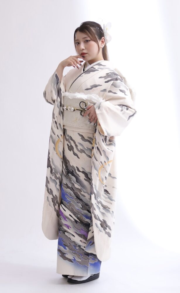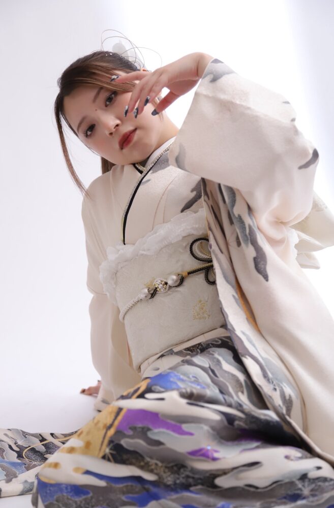 - 帯はあえて白にして帯揚げを黒にしコーデをしめる。