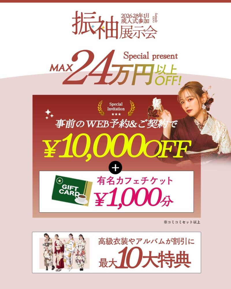 今回は9月26日(金)〜28日(日)に開催される振袖展示会について