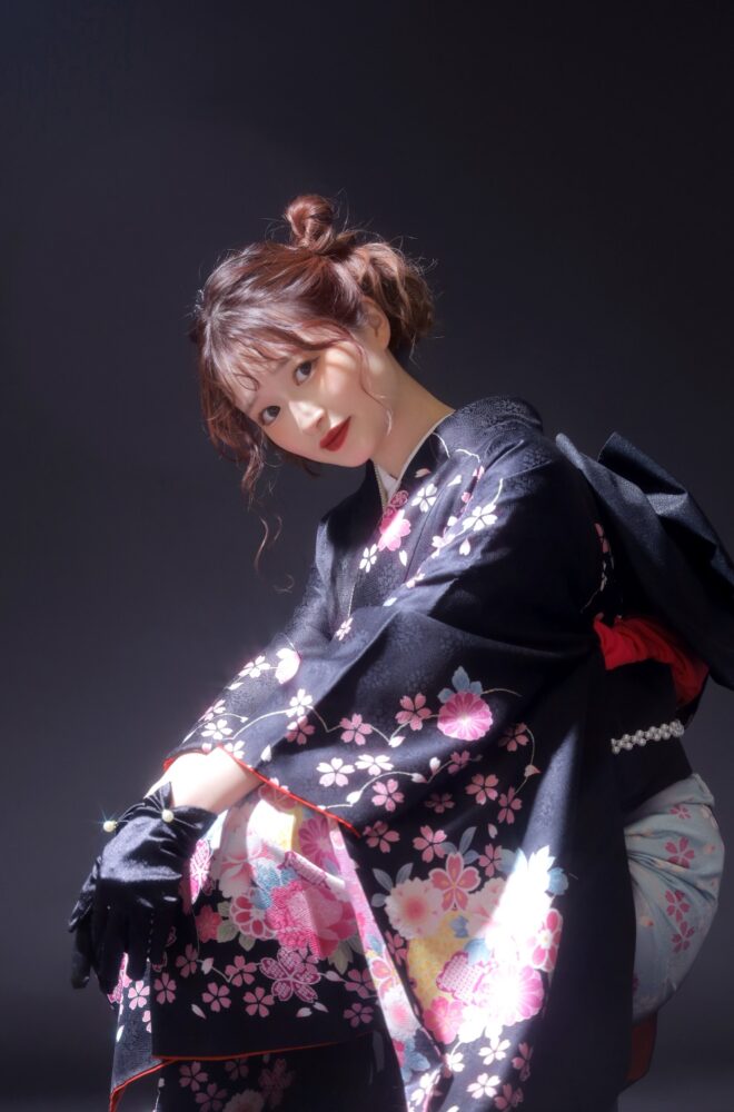 - > 【 Nontan’code 】「黒×桜」で魅せる、レトロモダンな新成人スタイル