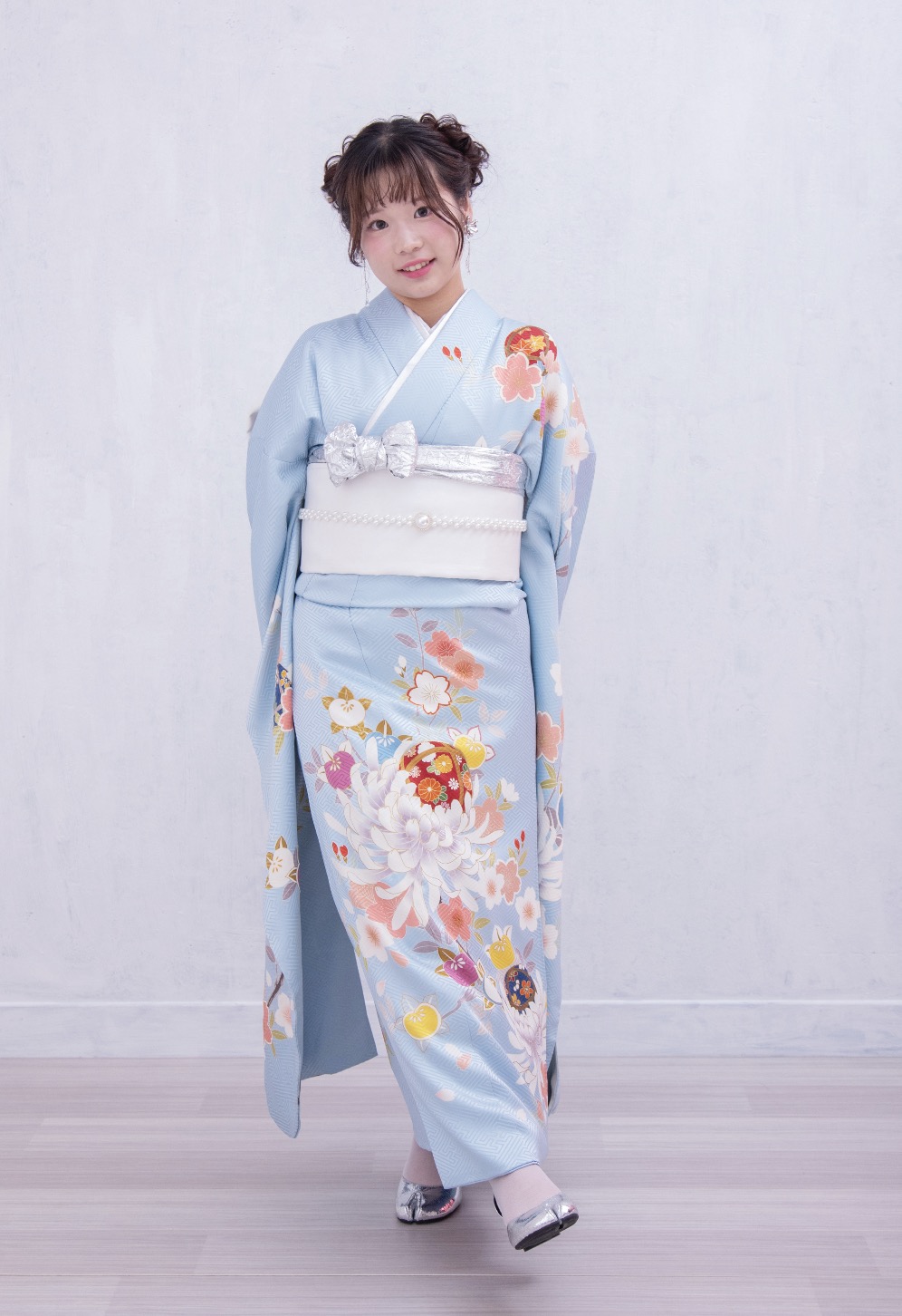 おすすめコーデ: 帯揚げや重ね衿にシルバーやパールの小物をプラスすると、よりお嬢様らしい清楚な仕上がりに!