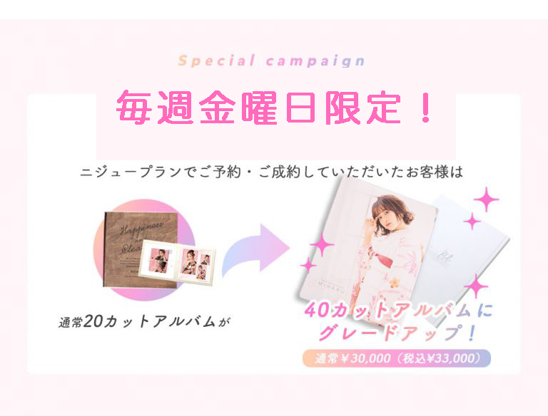 を開催いたします!金曜日にNijuプラン契約の方は何とアルバムのページ数が2倍に!