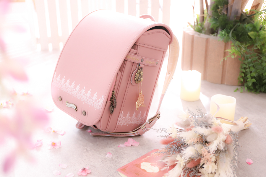 ランドセルのミントブルー色が、スタジオのお花がたくさんある内装によく映えます♡