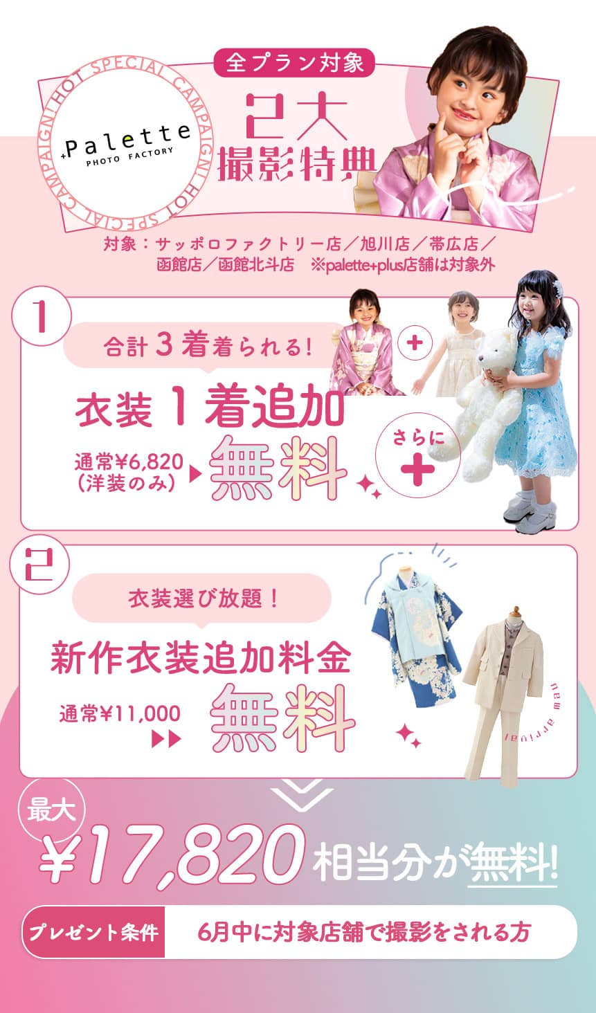 ご予約&撮影のご利用で嬉しいプレゼントやお値引き特典が満載!