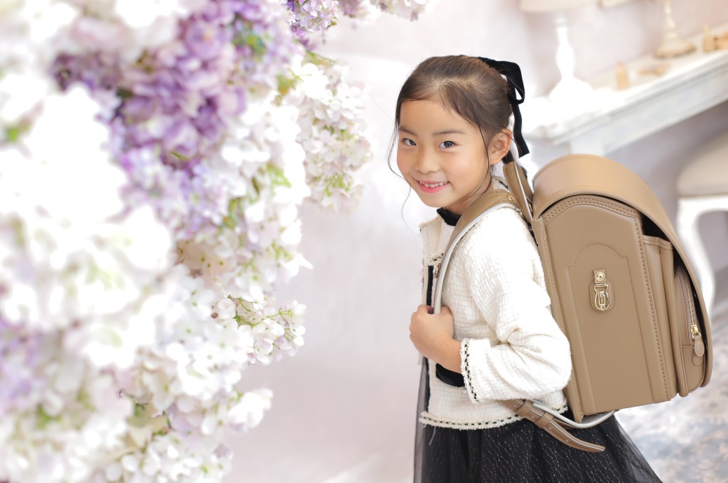 おしゃれなお持ち込み衣装とベージュのランドセルで💐【スタジオ:お花の国】