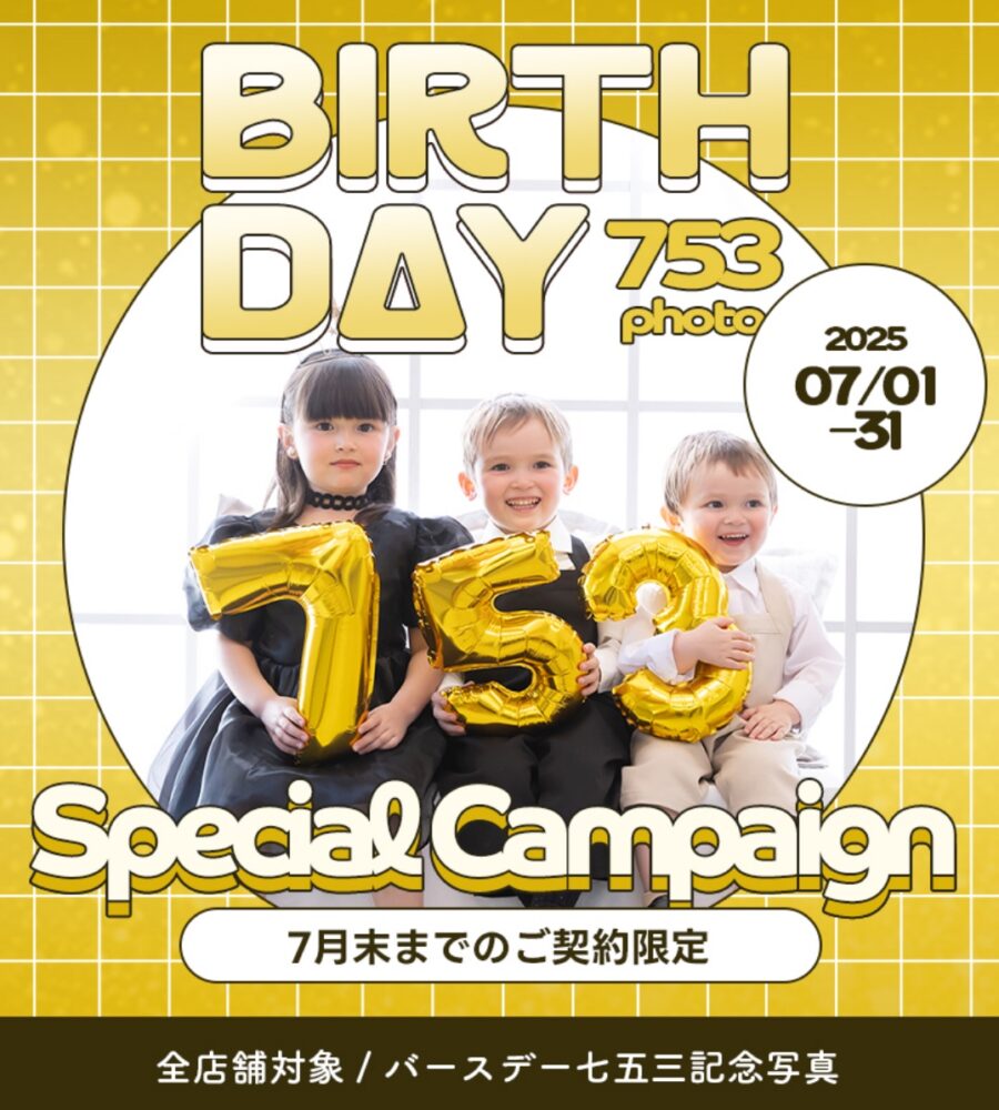 とってもお得なキャンペーンなので、この機会をお見逃しなく!!(7月末までのご入金が対象となります!撮影日は、誕生日前後3週間であればOKです!)