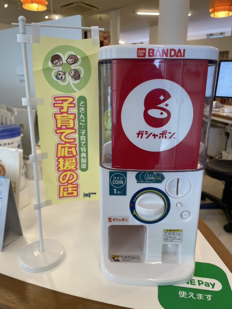 店舗でカードをご提示いただくと1回ガチャガチャができますので