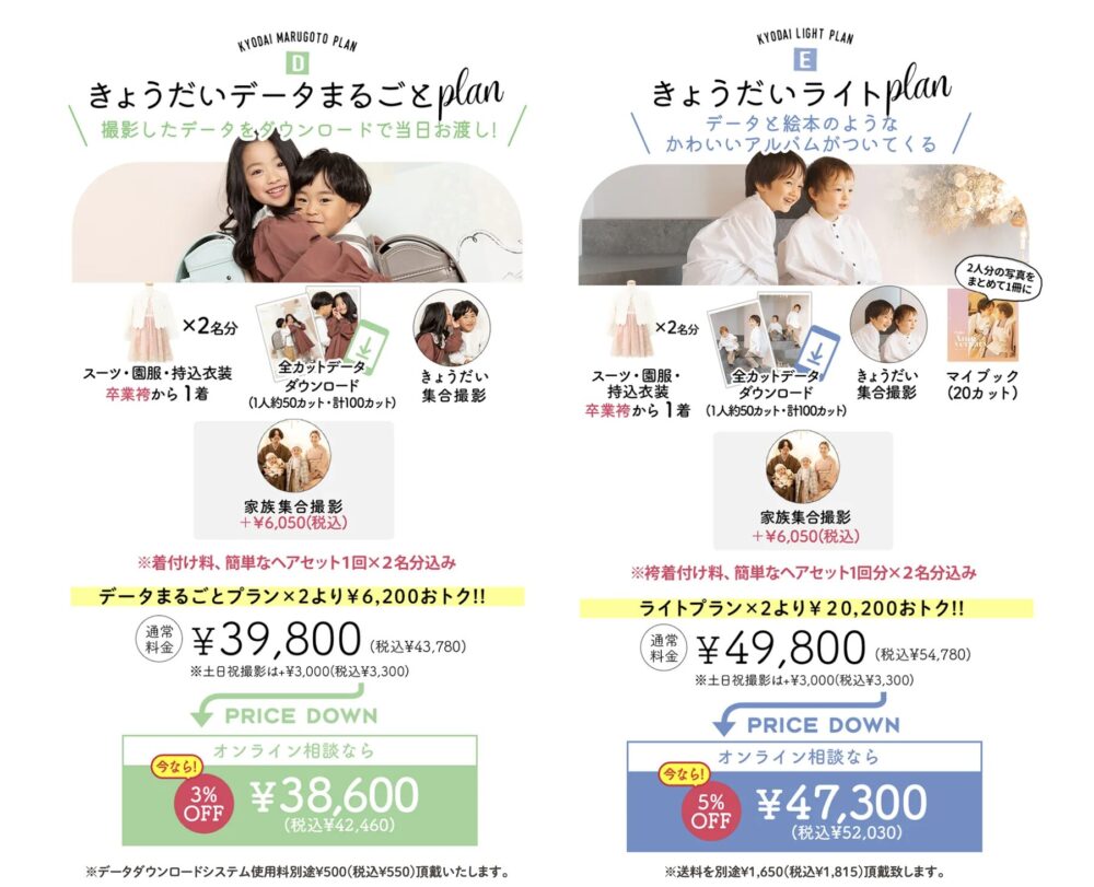 忙しいママ・パパにとって、記念撮影のために何度も休みを取るのは大変ですよね。ぱれっとでは、小学校入学記念と七五三記念を同時に撮影できるお得なプランもご用意しています 。もちろん、兄弟や姉妹の記念も一緒に**「きょうだいプラン」** で、一度にまとめて解決できちゃいます 。