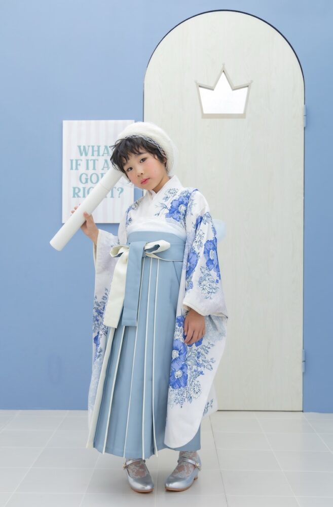 スタジオ撮影では「卒園袴」や「入学スーツ」など、思い出に残る衣装をご用意しています 。七五三撮影と同じく、卒園の記念撮影でも和装・洋装の両方を楽しみたいというご要望は多いです。