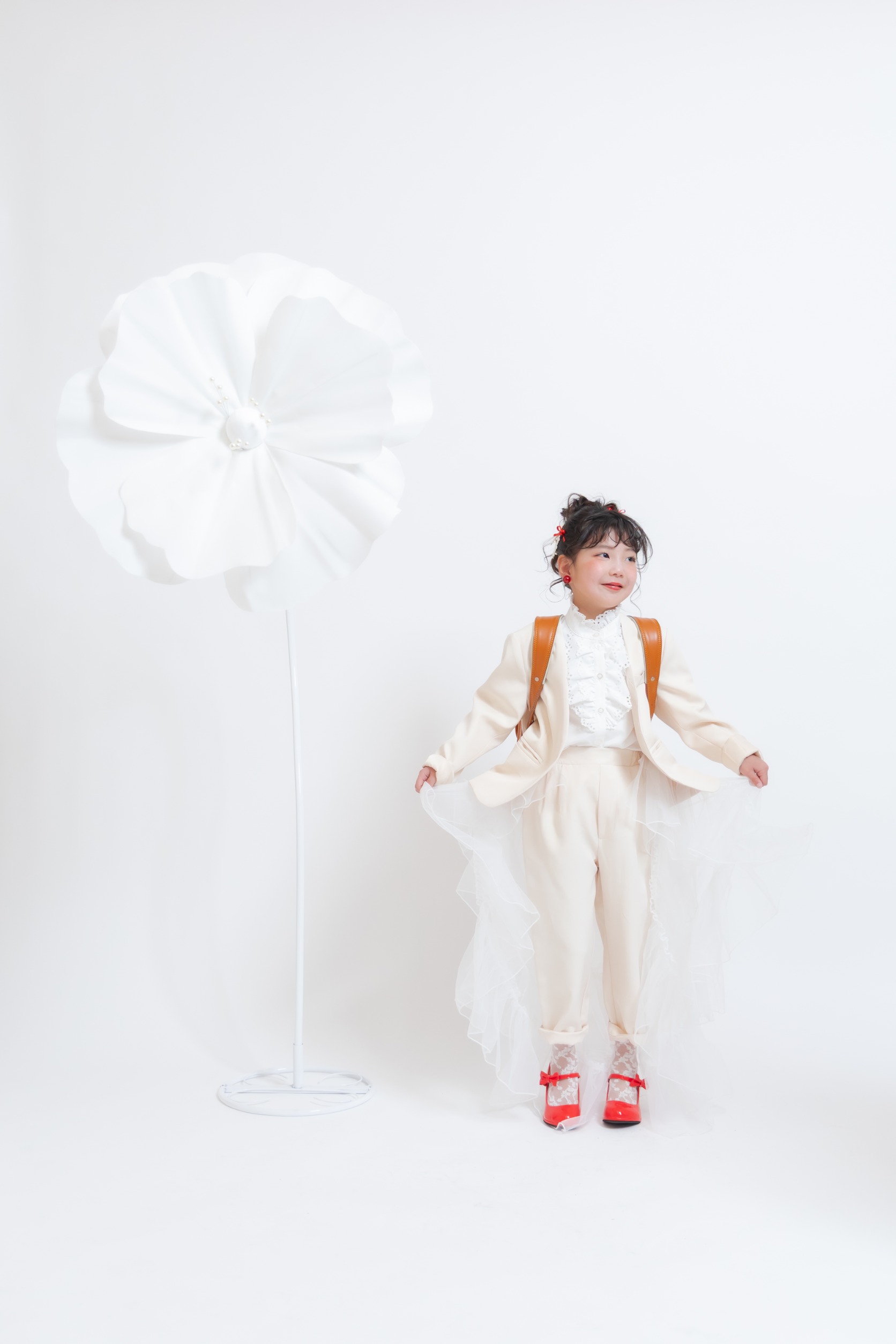 赤×白で小物👠は少し背伸びをしているけれど、大人っぽくなりすぎない