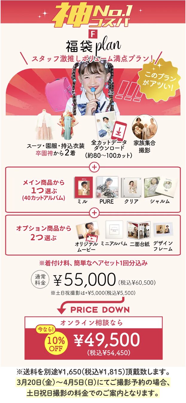 もし「アルバムも欲しいし、家族写真も撮りたい、入学のお祝い返しも必要。。」とお考えなら、