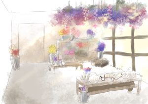 自社だけではなく工事の業者さんやお花屋さんなど、様々な会社が加わってスタジオ案を作り上げていきます。
