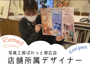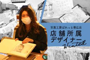 写真工房ぱれっと帯広店にて店舗所属デザイナーを募集中!未経験者大歓迎です。オフィスでなく店舗にてカウンセリングとデザインに取り組むやりがいは?どんなものを作るの?詳しくご紹介いたします!