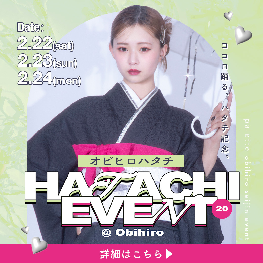 こんにちは! ぱれっと帯広店です! 帯広で2月22日〜24日に開催される振袖展示会「オビヒロハタチ」は、お嬢様にとって最高の思い出となる成人式を叶えるお手伝いをいたします。