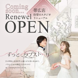 こんにちは!写真工房ぱれっと帯広店です!今回は帯広店で大型リニューアルが決定いたしました!オープンは11/2(木)。"和とバリエーション"にこだわった新しい"記念日のための空間"をお見逃しなく!!!