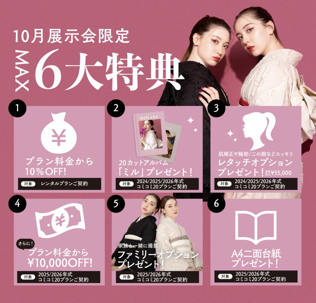 2023/09/30全道に店舗を構える写真工房ぱれっとの振袖展示会が9月土日祝限定で【札幌/帯広/旭川/函館】北海道主要都市で同時開催! 展示会限定の特典や特別プランが盛り沢山ですので、ぜひお早めにご予約くださいませ♡