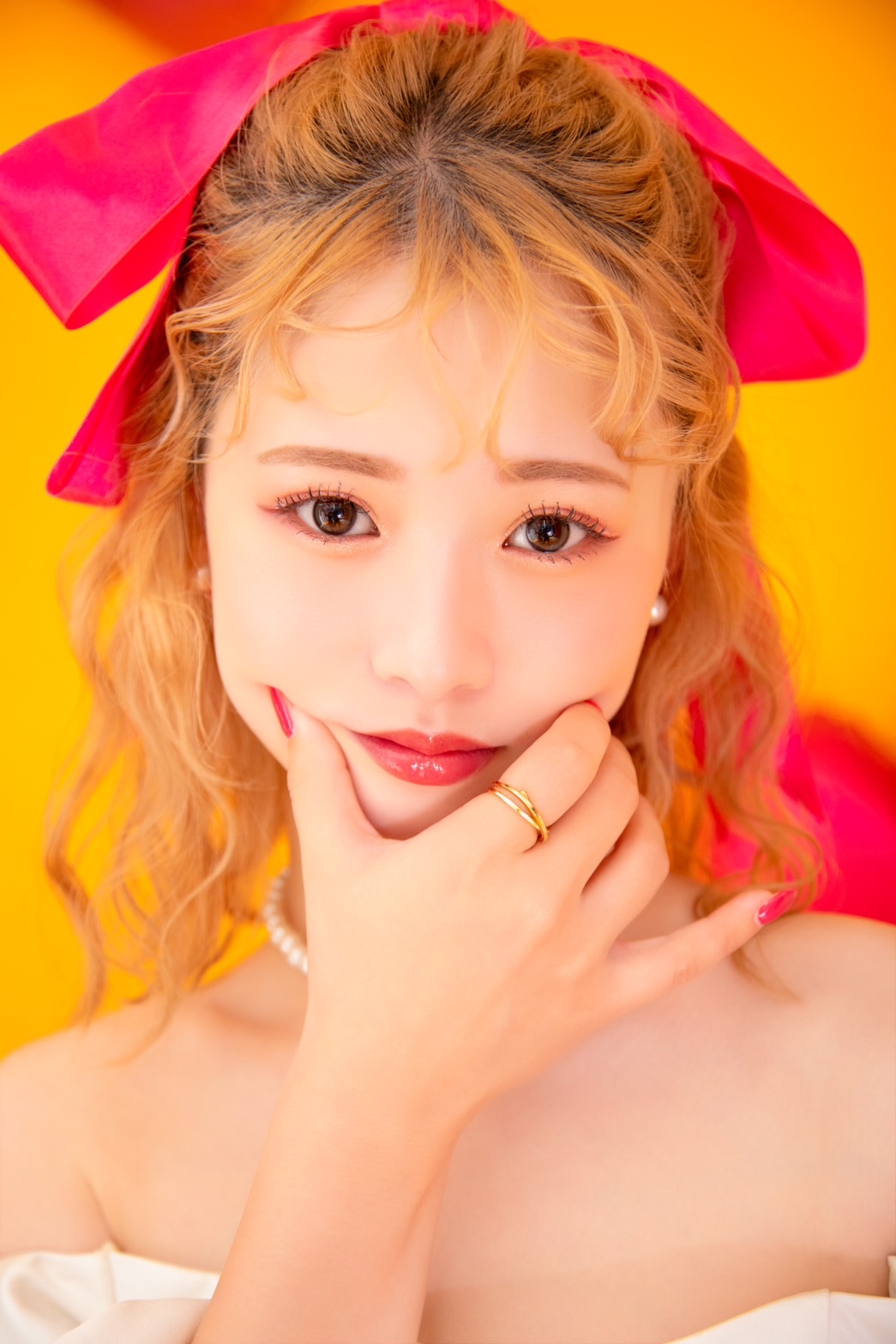 ヘアアクセサリーのリボンとネイルなど、細かいカラーの統一感も可愛いポイント!
