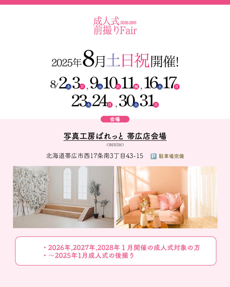 2025/08/02【振袖前撮りフェア】8月の夏休みスペシャル価格‼︎!【帯広店】