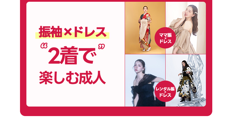 🤍2着で楽しむ成人記念!ママ振×ドレス、レンタル振袖×ドレスなど組み合わせ自由!