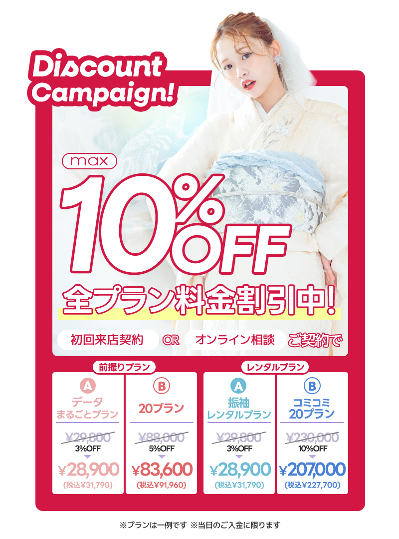 オンライン相談 OR 初回来店にて、ご契約の場合max10%Off🎟