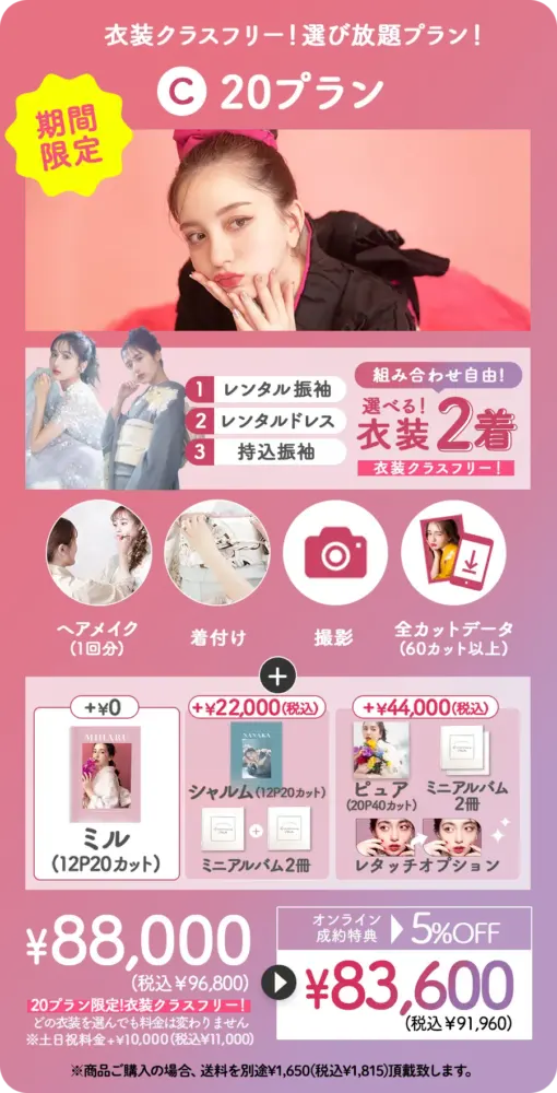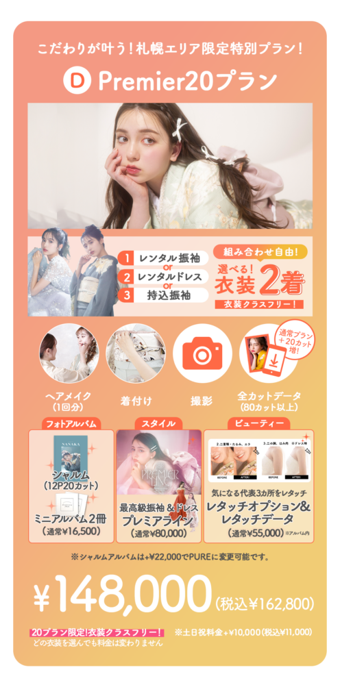 さらに、通常追加料金が¥22,000のプレミアラインの振袖&ドレスが、