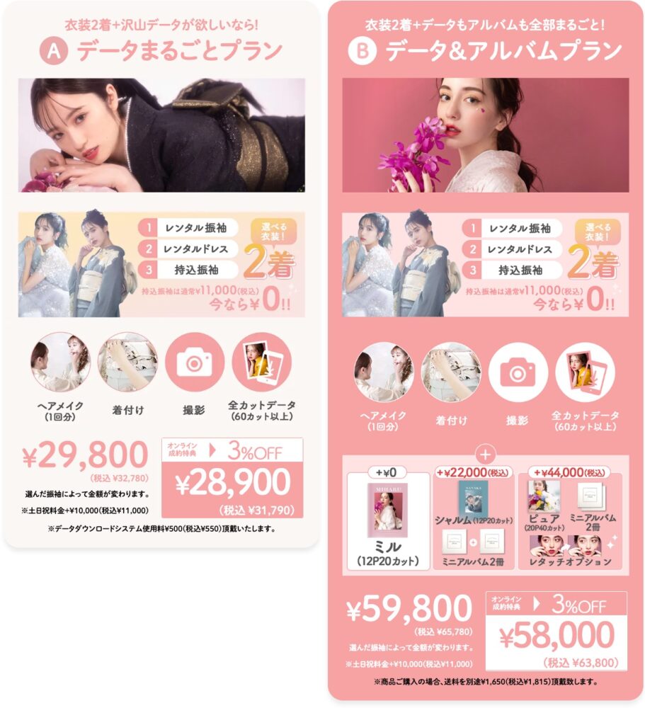 データのみのプランから思い出を形として残せるアルバム付きまでご用意がございます!