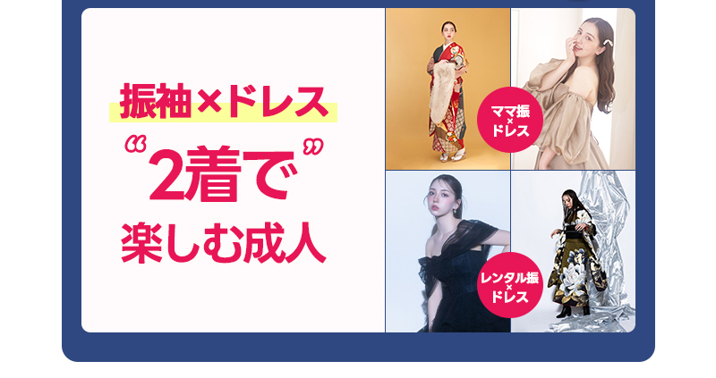 🤍2着で楽しむ成人記念!ママ振×ドレス、レンタル振袖×ドレスなど組み合わせ自由!
