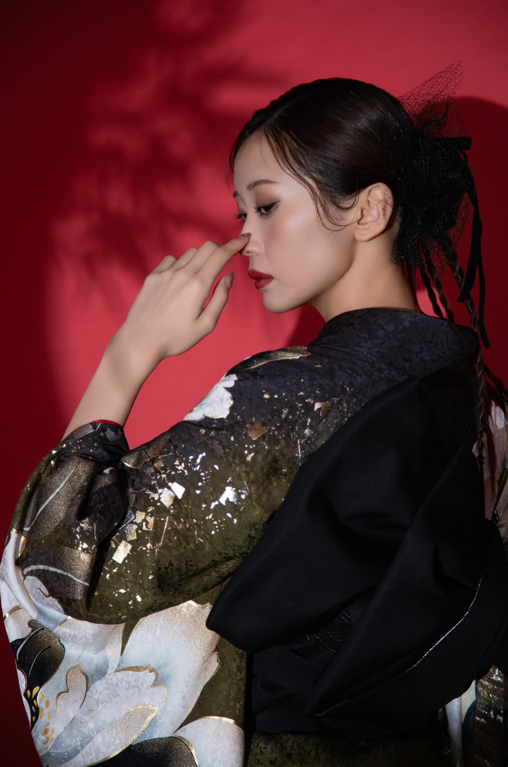 ★深赤リップ:和装に負けないドラマチックな口元