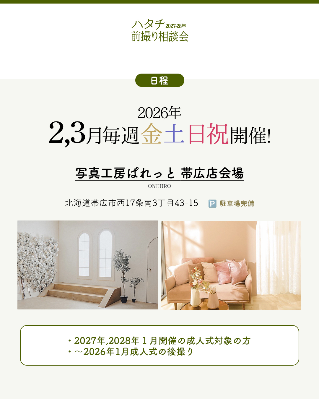 2,3月限定『帯広ハタチ前撮り相談会』ご予約受付開始いたしました!!