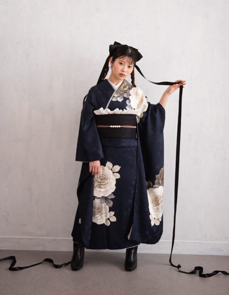 今回は、大人気ネイビー×ホワイトの振袖のご紹介!