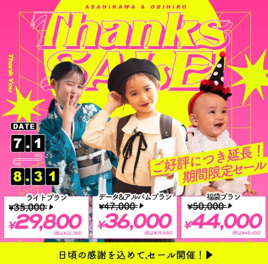 撮影日は9月以降でも、対象となりますので、七五三の撮影を検討中の方は