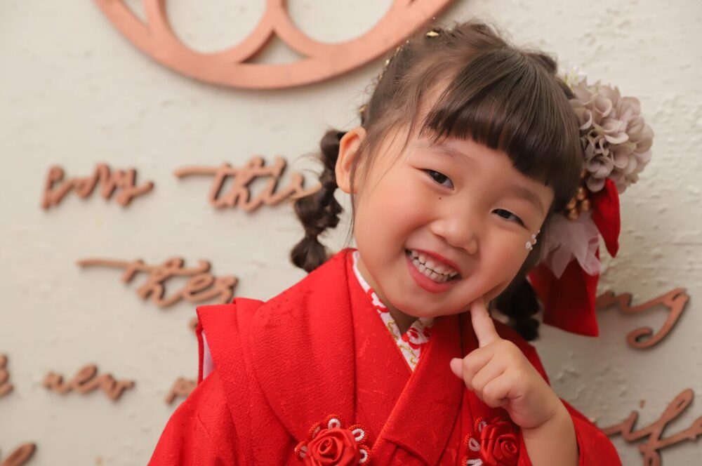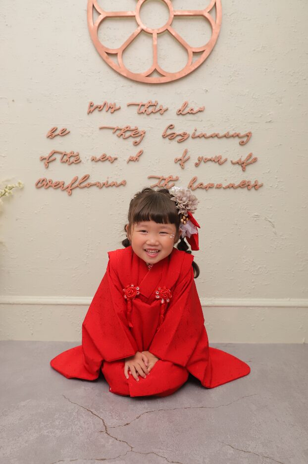こんにちは!写真工房ぱれっと帯広店です! 今回はきょうだいプランでご来店いただいた3歳の女の子をご紹介していきます! 衣装はお持ち込みいただいたもので赤の着物がとても似合っていました!!
