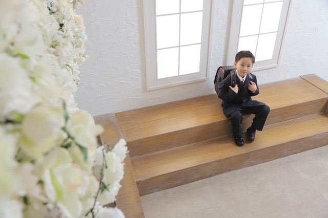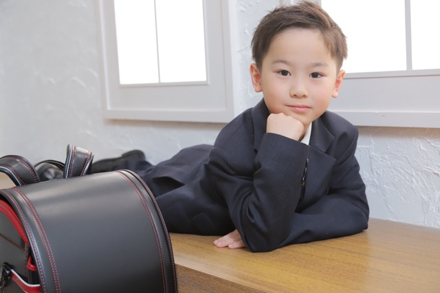 スーツに身を包み、大きなランドセルを背負った姿には、新しい生活へのワクワクが溢れています。