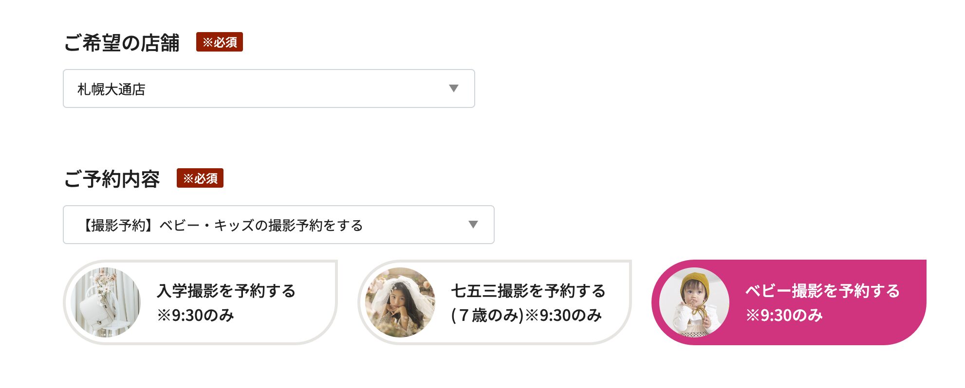 事前予約制となっておりますので、ご希望の方は撮影予約と同じタイミングで予約されることをオススメします♫