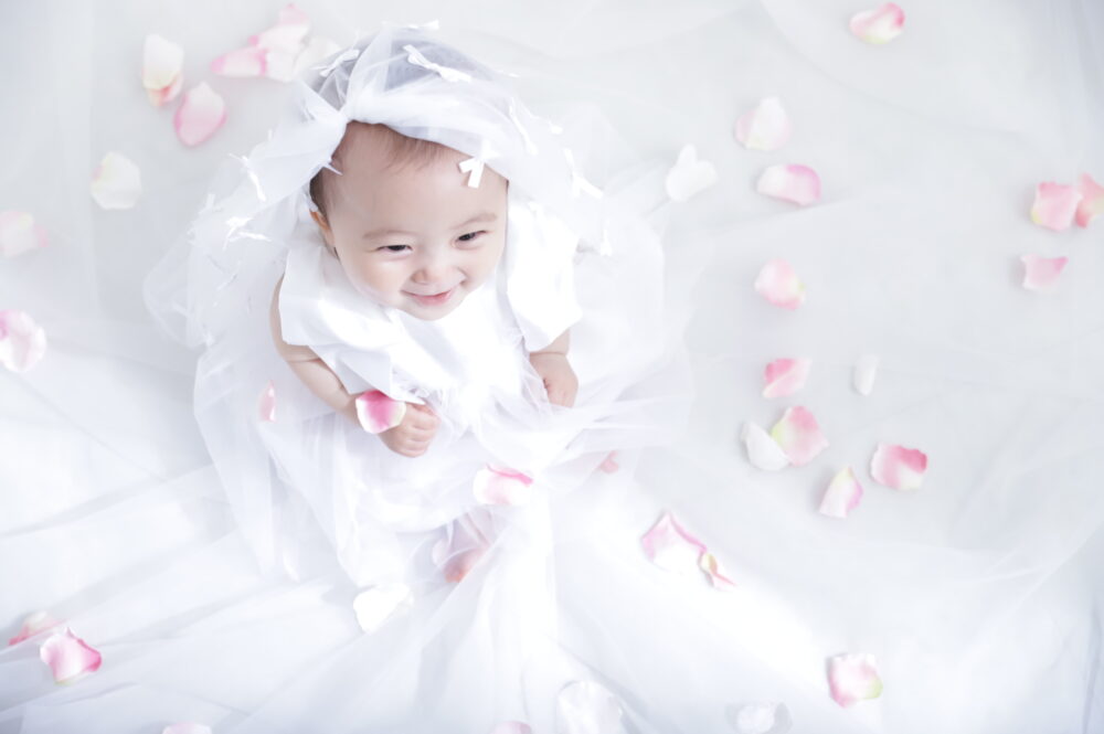 フラワーシャワーに赤ちゃんも興味津々になること間違いなし!