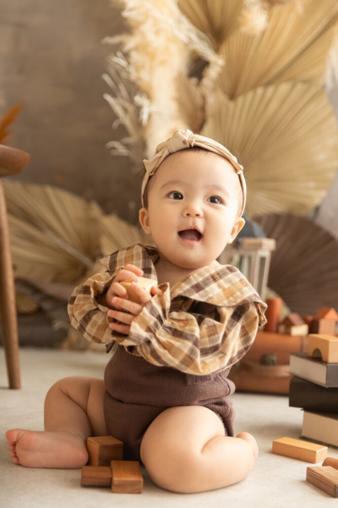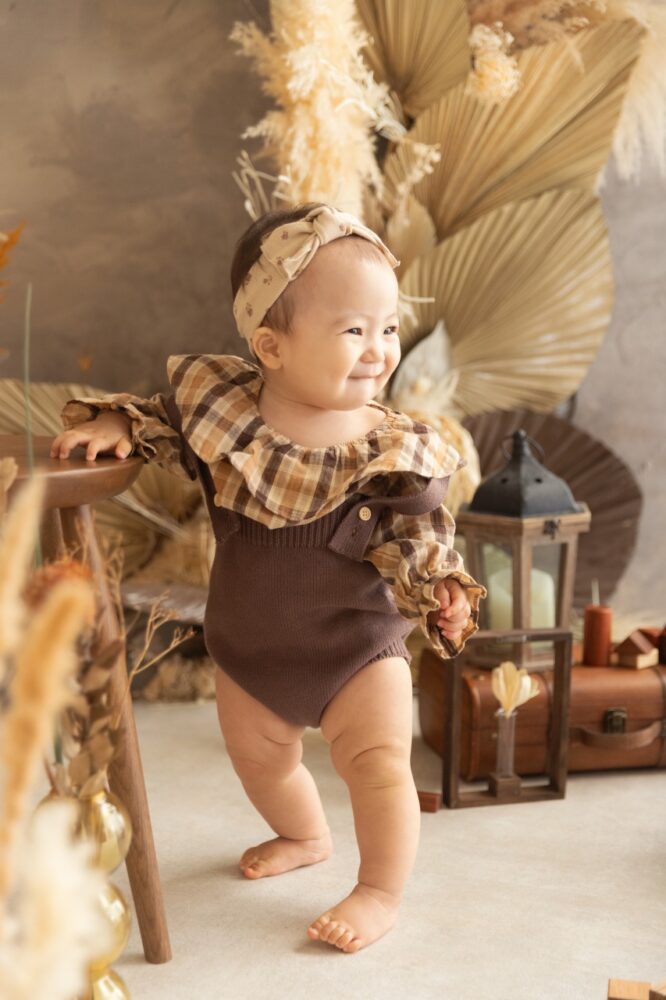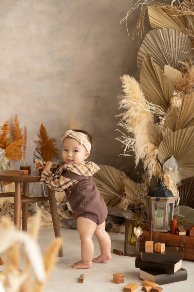 木の椅子につかまり立ちをする瞬間も逃さず撮影することも可能です◎