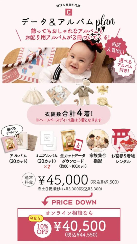 今回、100日さんでご来店されたお客様は【データ&アルバムプラン】をご利用!