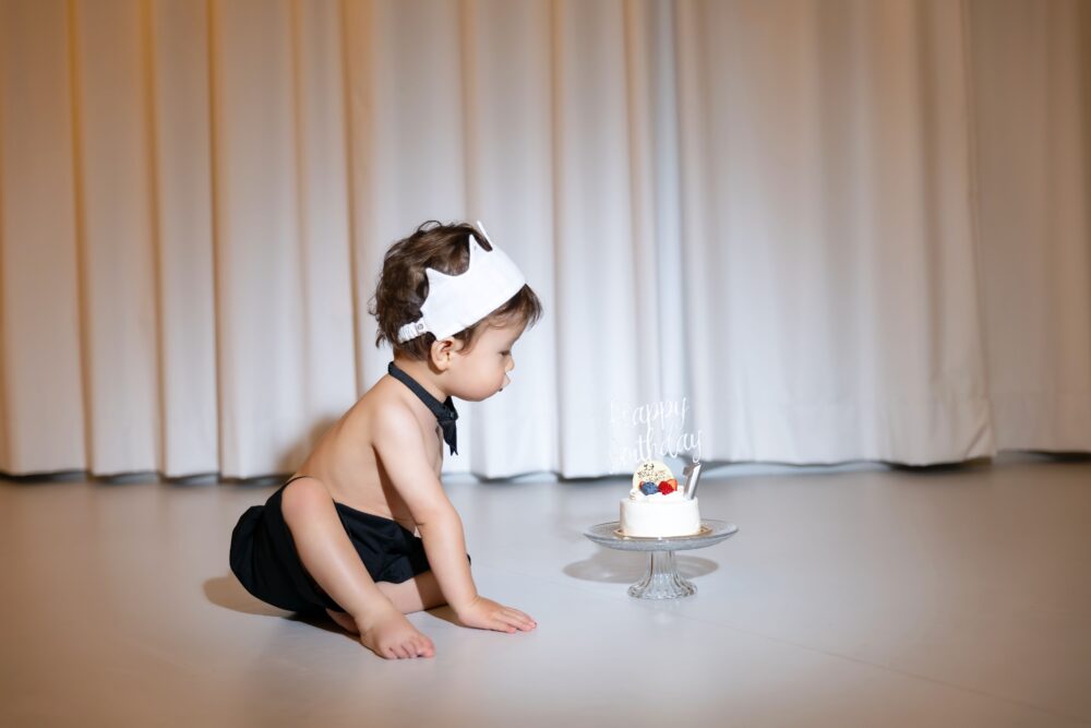 1歳の記念に誕生日ケーキを持ってきてもOK!プラン料金に+3300円(税込)でスマッシュケーキの撮影もできちゃいます!