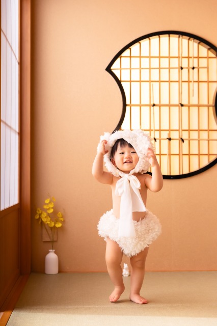 「和室でおしゃれな写真を撮りたい」「赤ちゃんらしい、今しか撮れない姿を残したい」という願いをすべて叶える、とっておきのスタイルです。