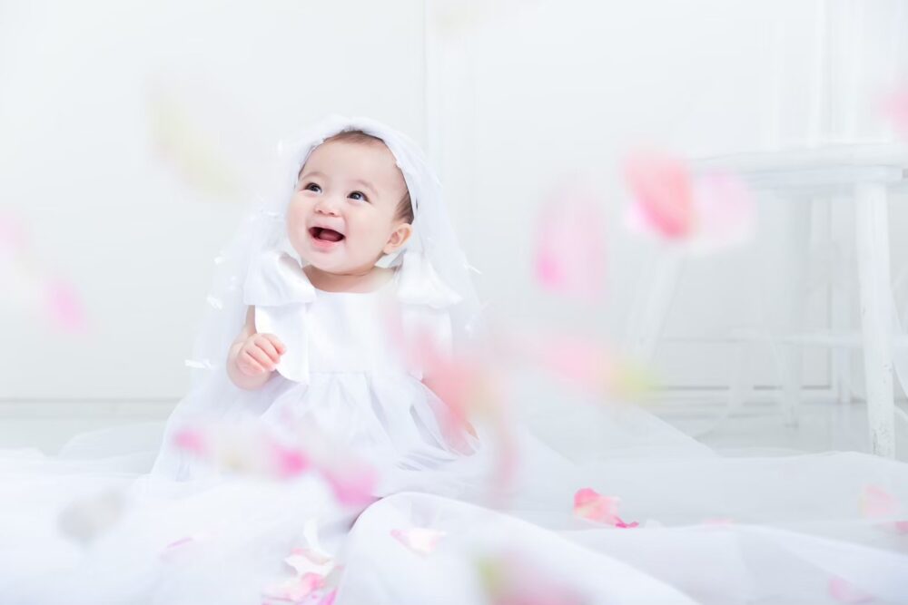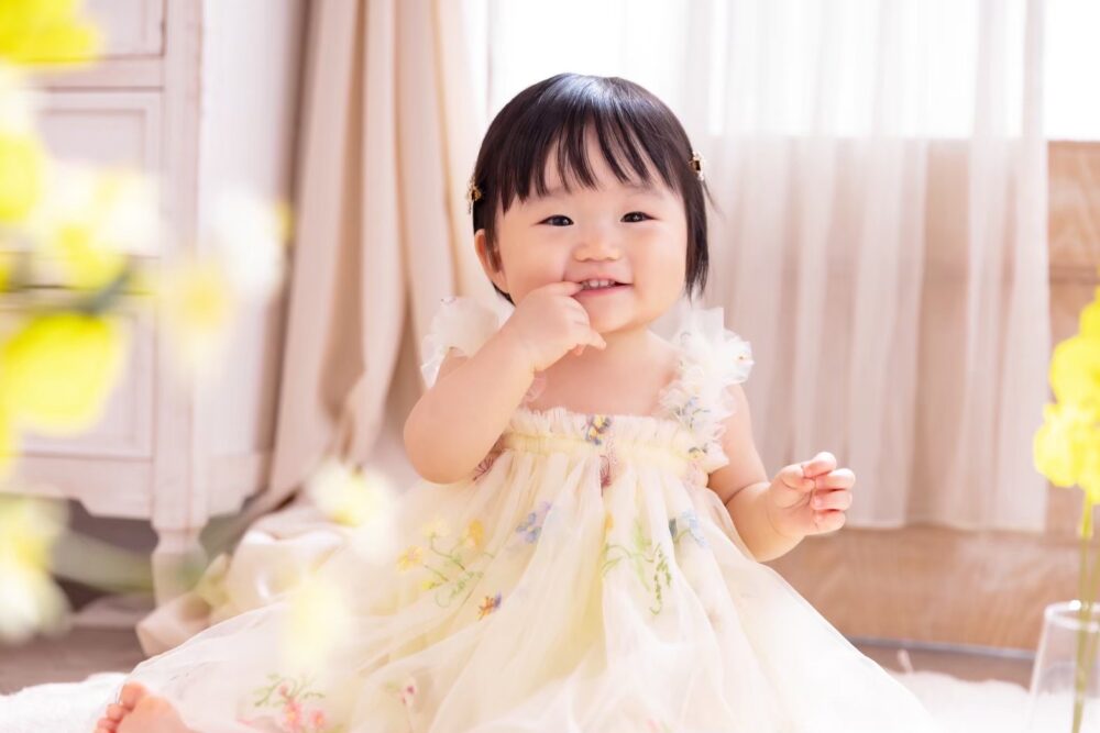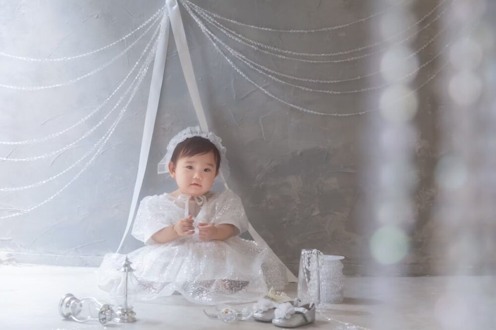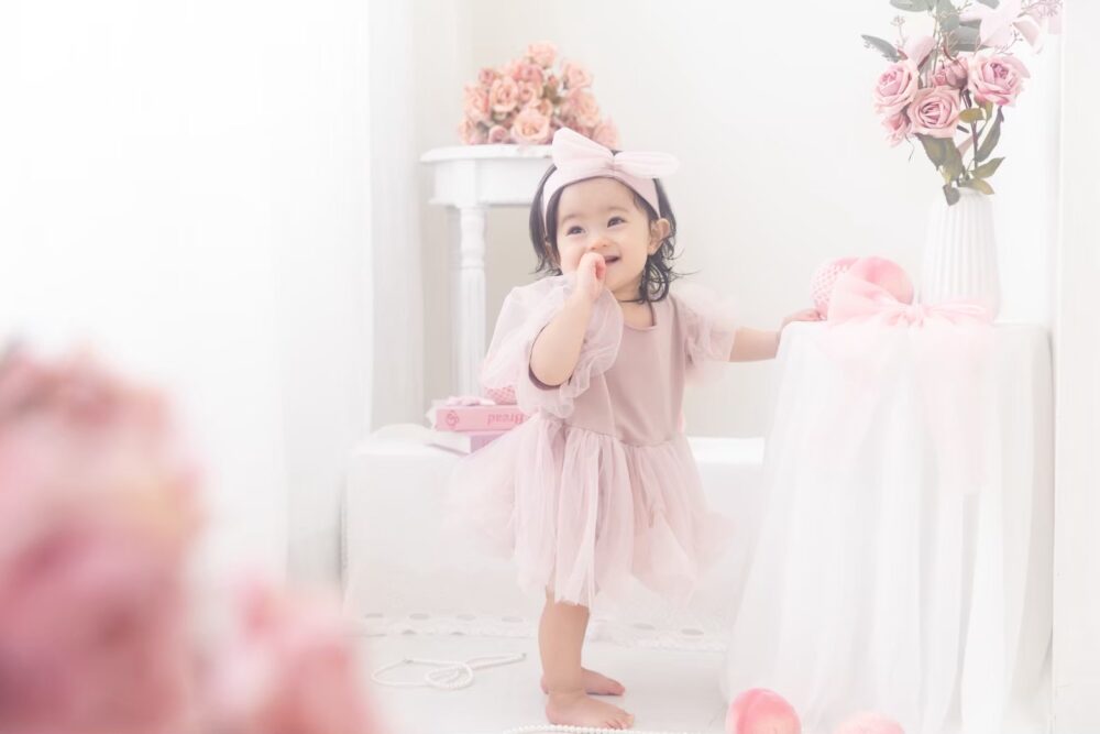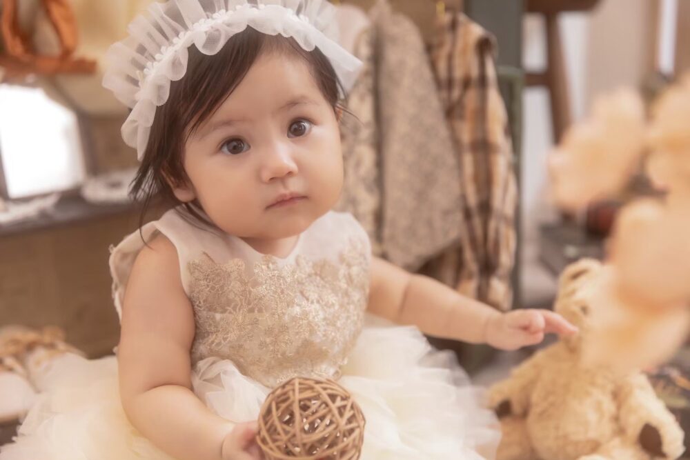 お子様の誕生から100日、そして初めてのお誕生日。そんな、一生に一度の大切な節目を「最高に可愛い姿で残したい」と願うのは、すべてのパパとママの共通の想いですよね。特に女の子の赤ちゃんにとって、ふわふわのドレスに身を包んだ姿は、まさに「小さなお姫様」そのもの。