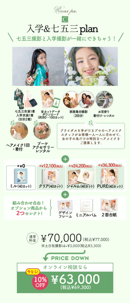 七五三と入学撮影が一緒に出来るお得なプランなどもご用意しております!