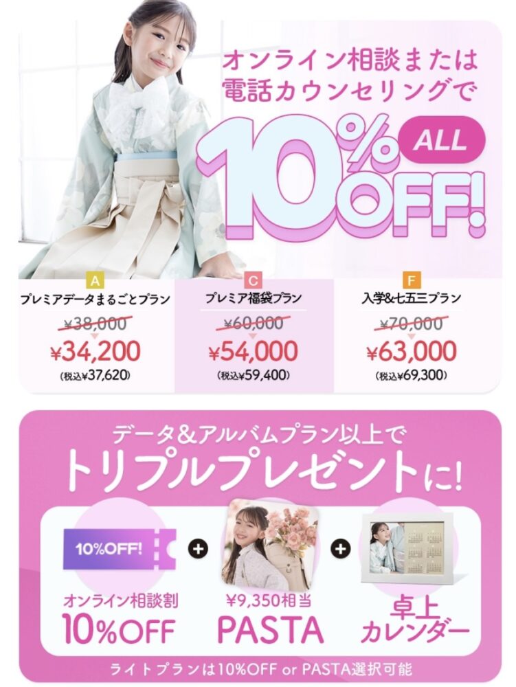 データ&アルバムプラン以上10%OFF+パスタ+卓上カレンダーの豪華トリプルプレゼント♪