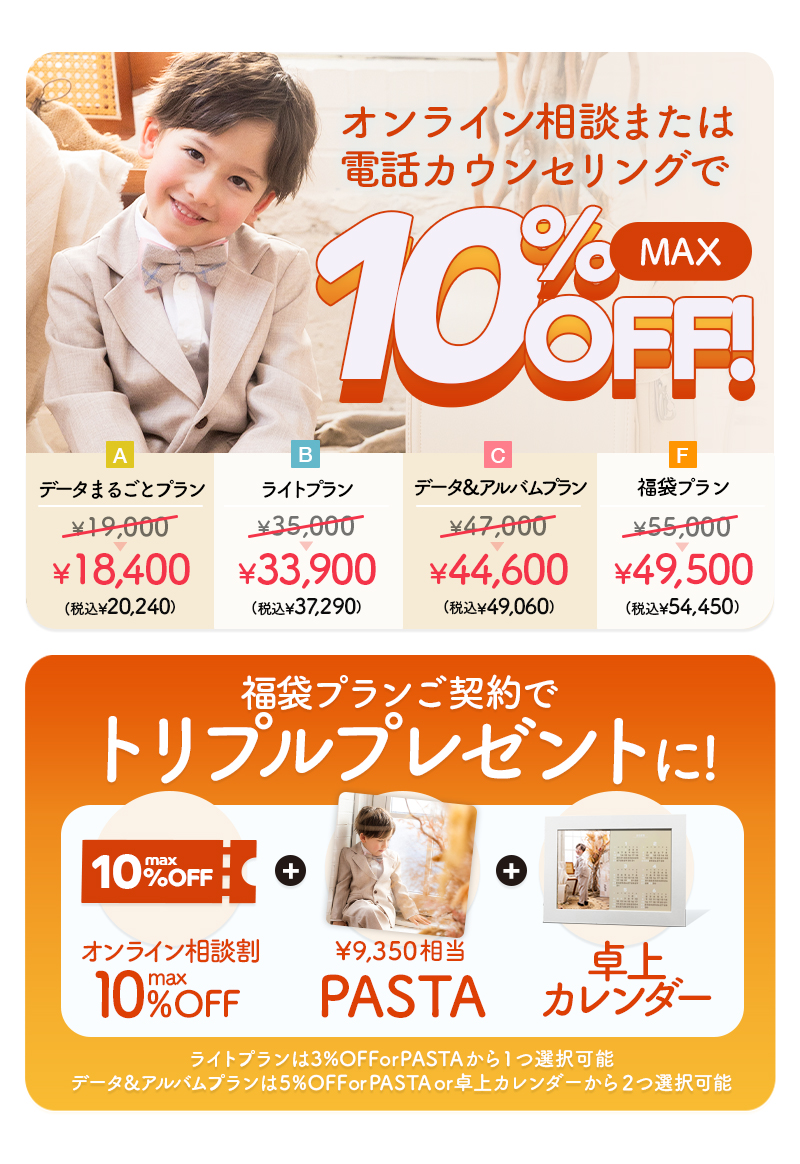 ※データ&アルバムプランは5%OFF or PASTA or 卓上カレンダーから2つ選択可能