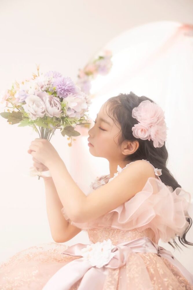 明るく華やかなドレス姿は、お子様自身の気分もUP!モデルさんのようにポージングしちゃいましょう♡
