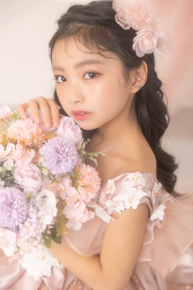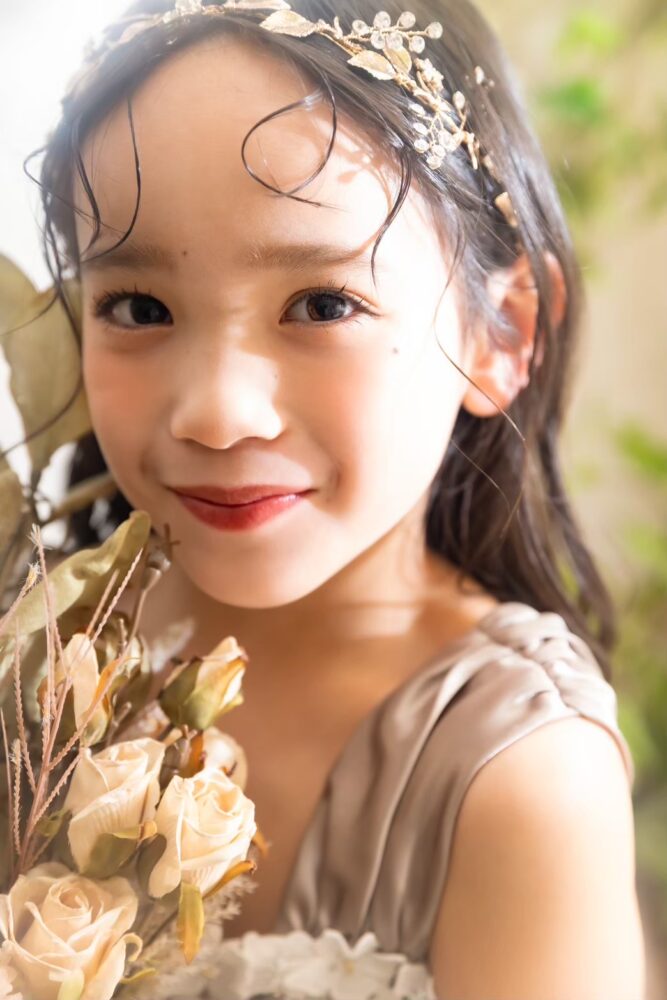 このオプションでは、普段ウェディングなどを手がけるプロのヘアメイクスタッフが、7歳のお子さまの魅力を最大限に引き出すヘア&メイクを担当します。
