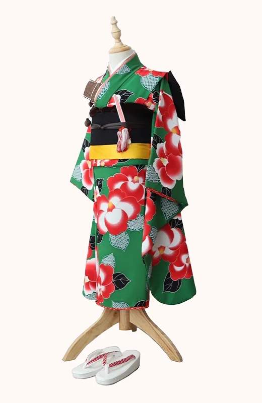 お洋服ではあまりしない色の組み合わせも、お着物だとレトロ可愛い。